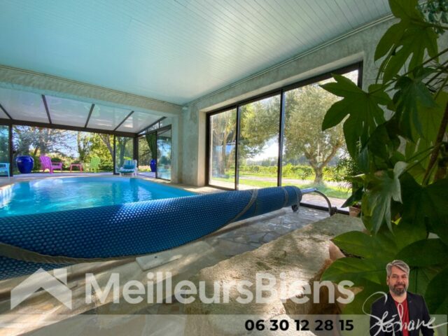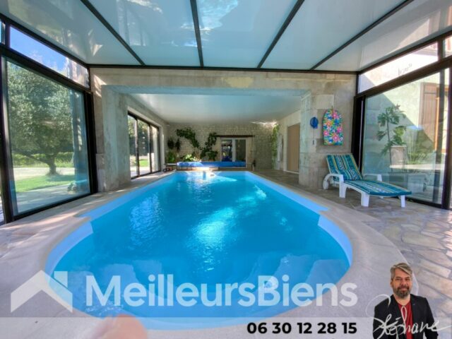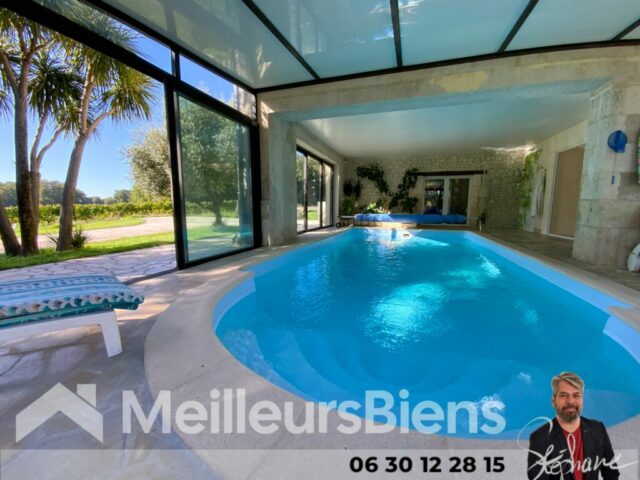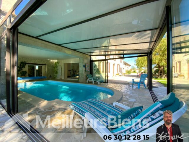 La piscine intérieure chauffée vous permet un plongeon toute l’année, tout les batants de la véranda s’ouvrent.