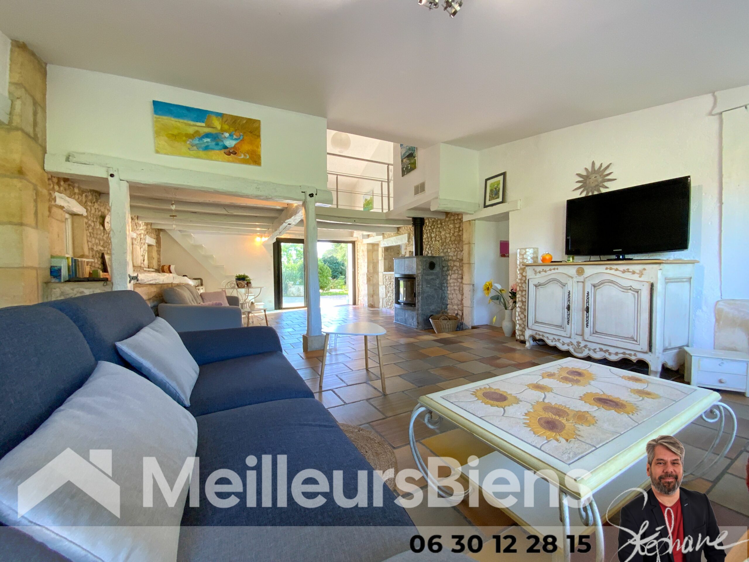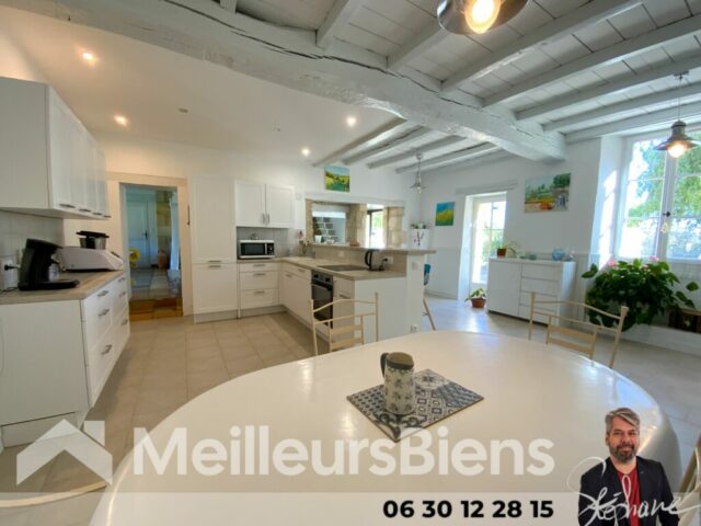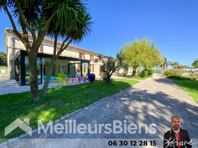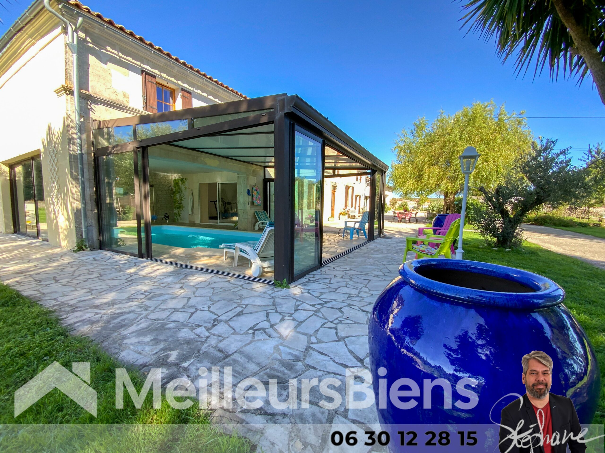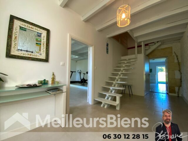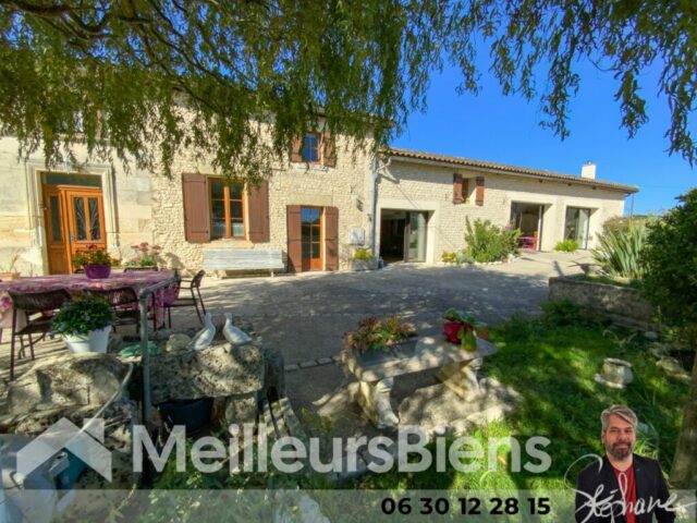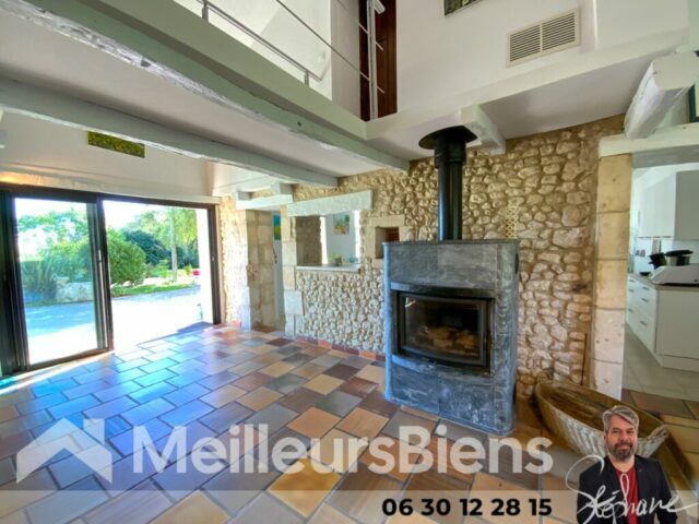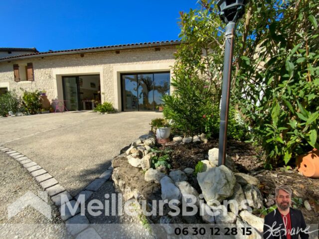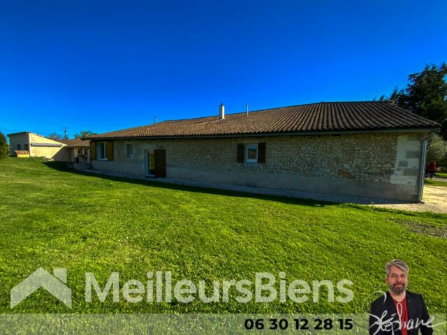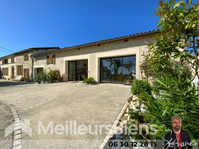 À une heure de Bordeaux, Angoulême ou Royan, maison traditionnelle rénovée de cinq chambres dont une suite parentale. Chauffage à condensation récent, chauffe eau thermodynamique, poêle de masse en pierre ollaire, logement indépendant.