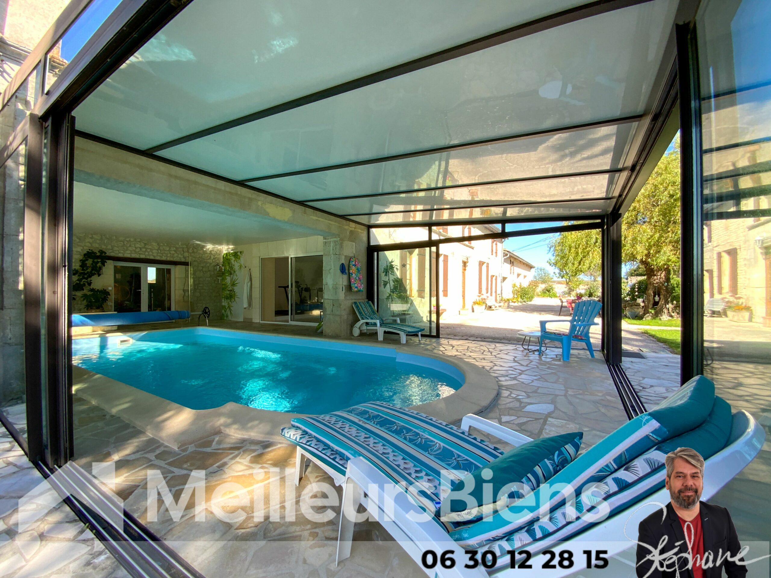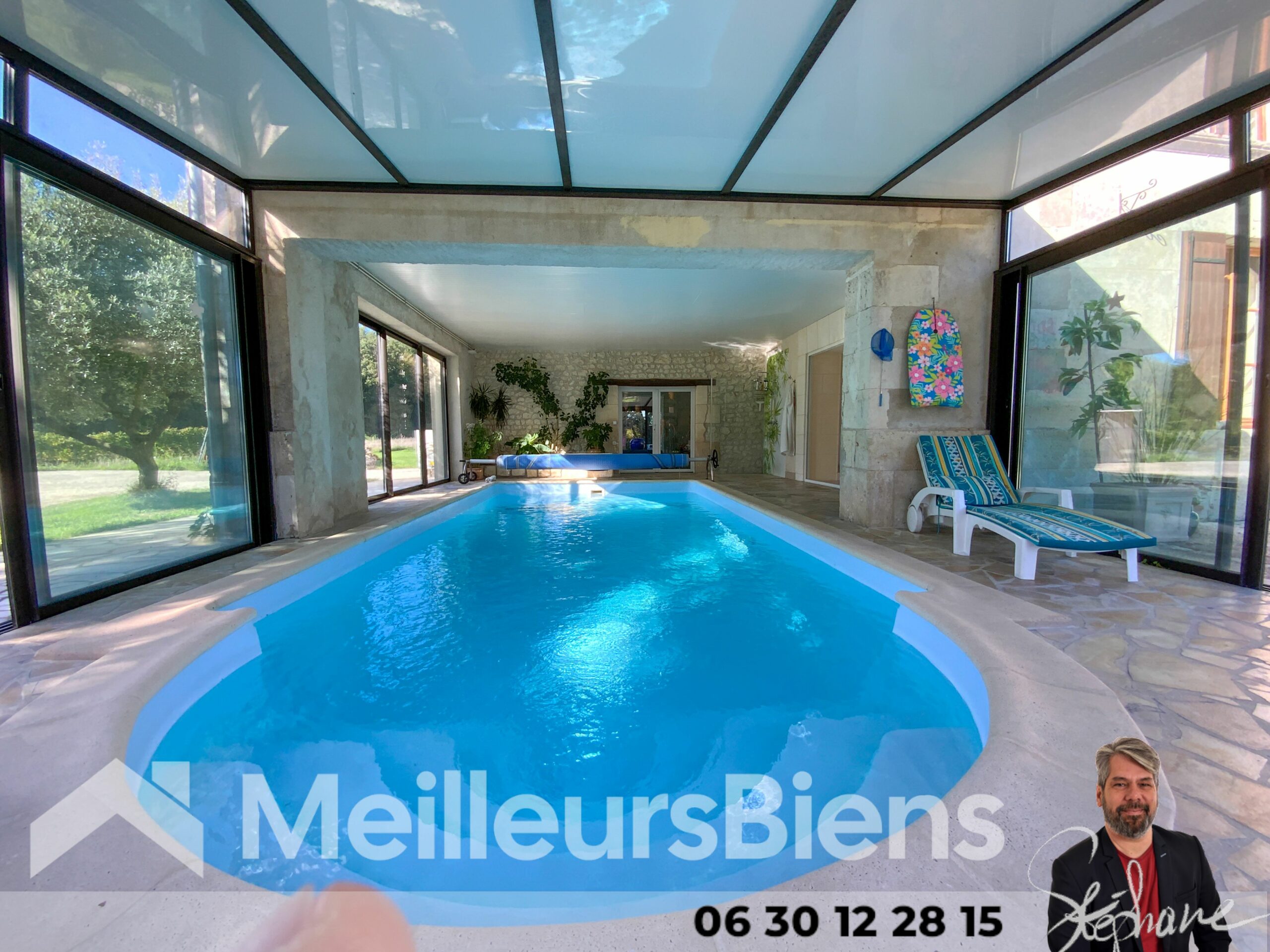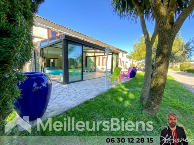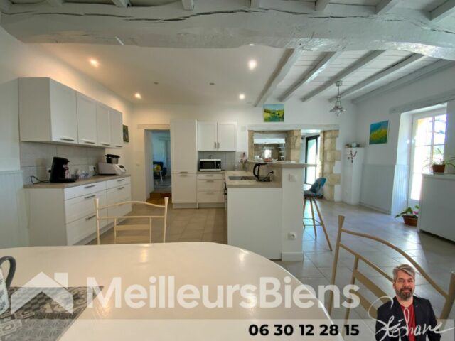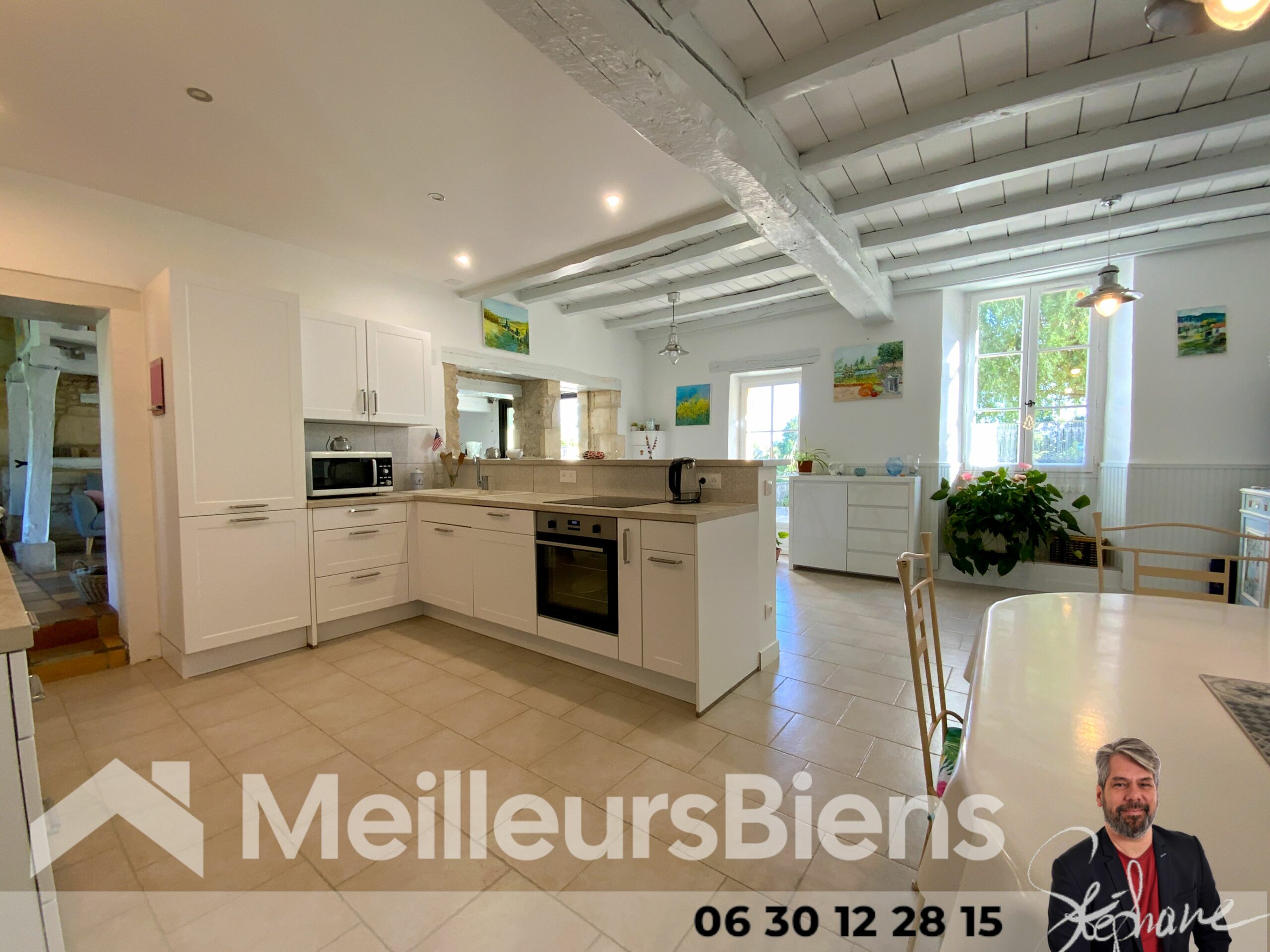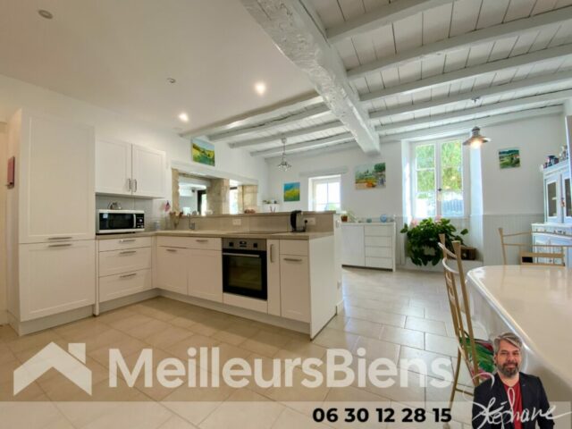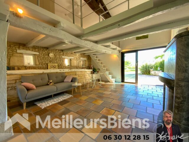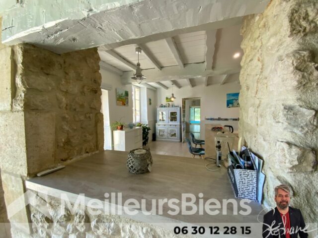 À une heure de Bordeaux, Angoulême ou Royan, maison traditionnelle rénovée de cinq chambres dont une suite parentale. Chauffage à condensation récent, chauffe eau thermodynamique, poêle de masse en pierre ollaire, logement indépendant.