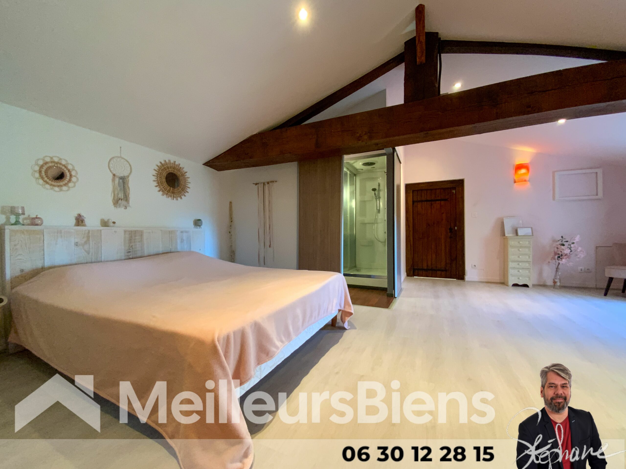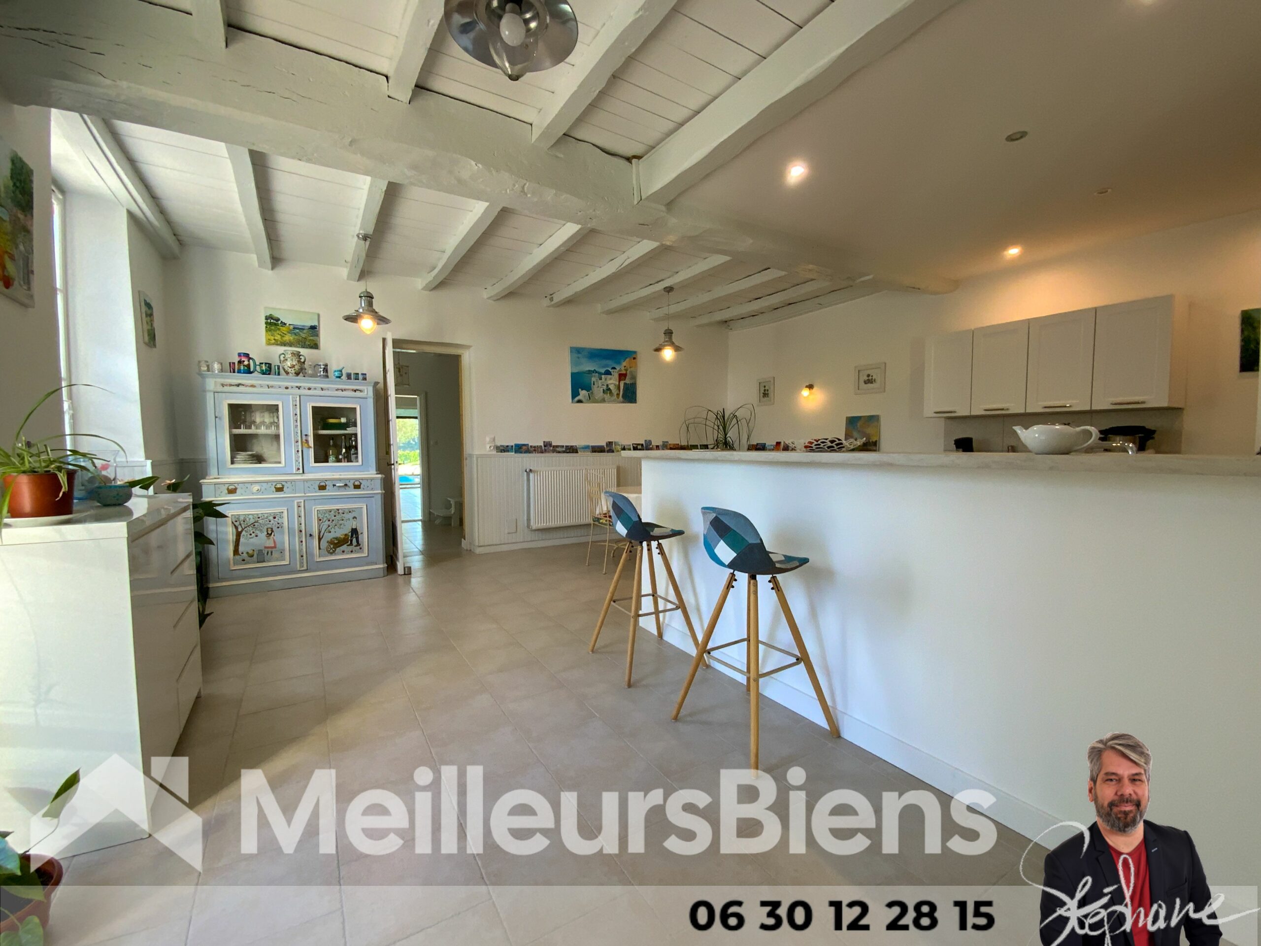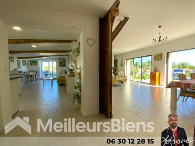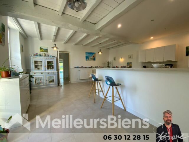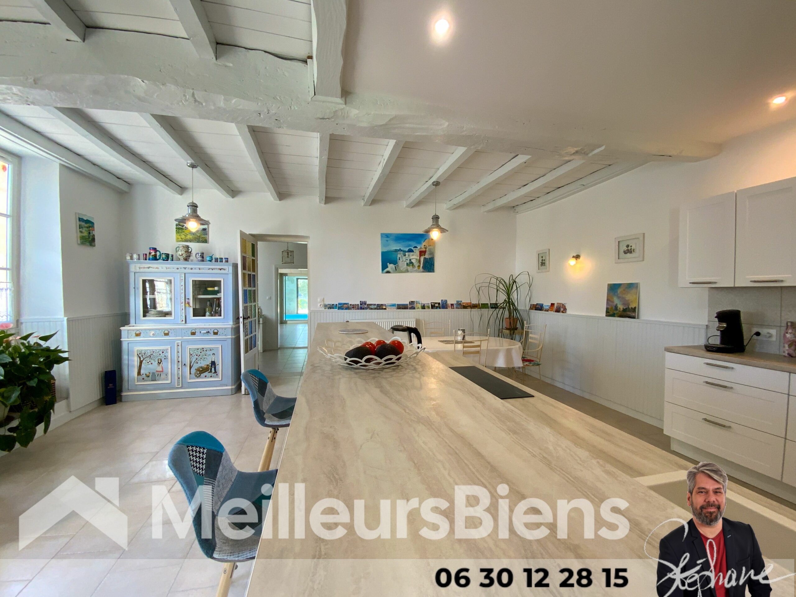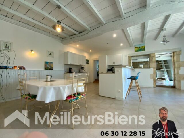 À une heure de Bordeaux, Angoulême ou Royan, maison traditionnelle rénovée de cinq chambres dont une suite parentale. Chauffage à condensation récent, chauffe eau thermodynamique, poêle de masse en pierre ollaire, logement indépendant.
