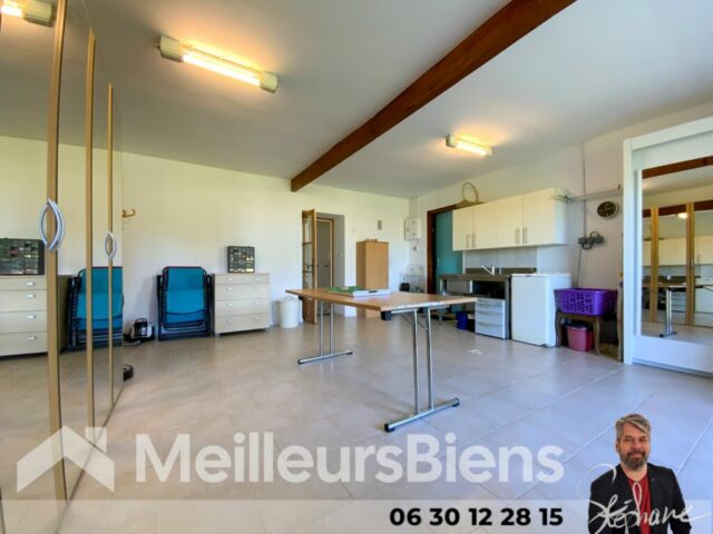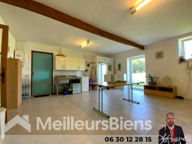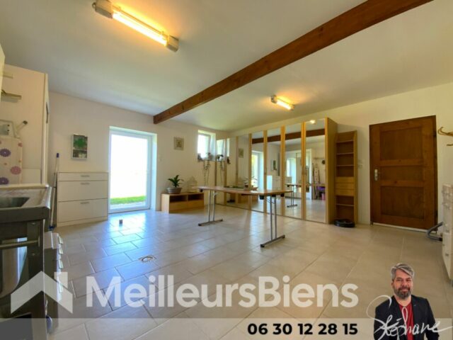 Une grande pièce avec deux baie vitrée peu vervir pour divers jeux, espaces créatifs, ou encore véhicules de collection.